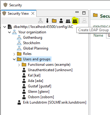 Open the Security view (Help->Open Security). Authenticate with a user having administrative permissions (to edit the AC system itself).