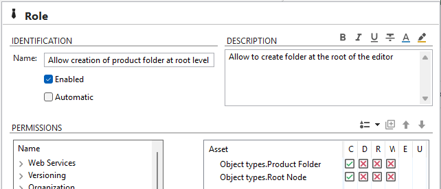 STEP 1: Design a role that allow creation of the product folder at root level. (Include the Product folder and the Root node assets.)