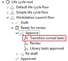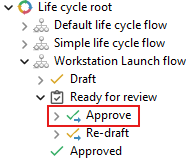A life cycle flow defines the complete life cycle of an object within AVIX. It is composed of a number of statuses and transitions that connect them.