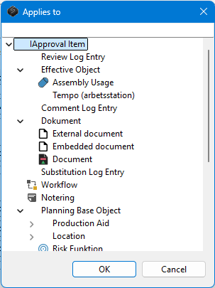 A list of AVIX object types that can use this flow. If a parent in the tree structure is selected then the flow will apply to all children of that parent.