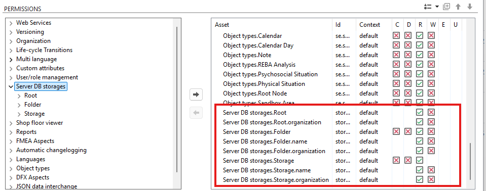 • Permissions for server-side storages has been introduced and has a default value of "allow". This means that various actions from the storage browser are enabled by default:
