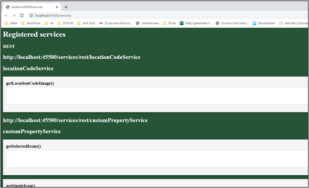 In case you are working on the host where the server is installed, try: http://localhost:45500/services