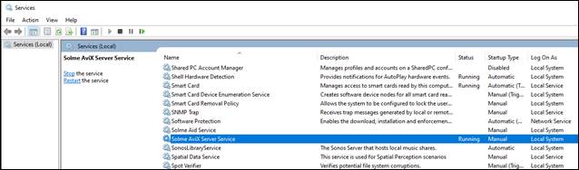 Open Windows Services manager. Locate the "Solme AviX Server Service":