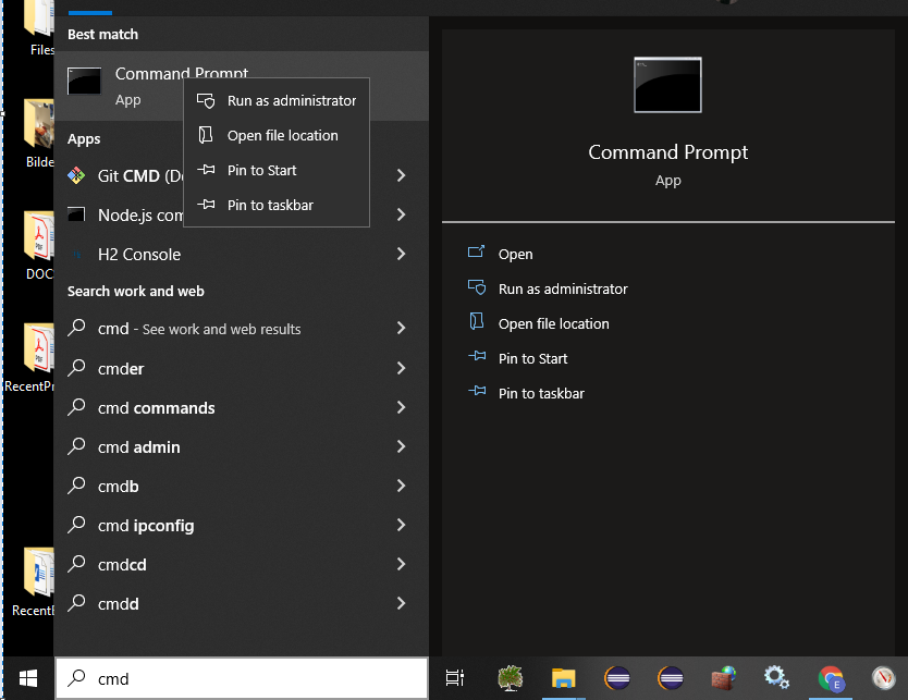 - Open a command prompt with administrative privileges