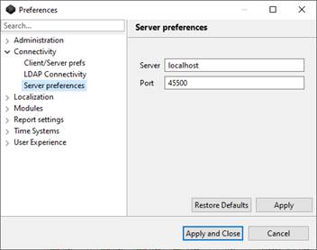 - Under the preference section for [se.solme.avix.server.cdo], you can specify the following port (to another value than default being 2036):