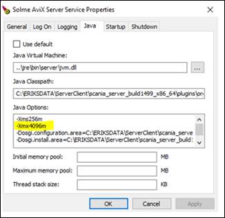 - Set options for the service can be reviewed by running commons-daemon/SolmeAviXServer.exe service manager application.