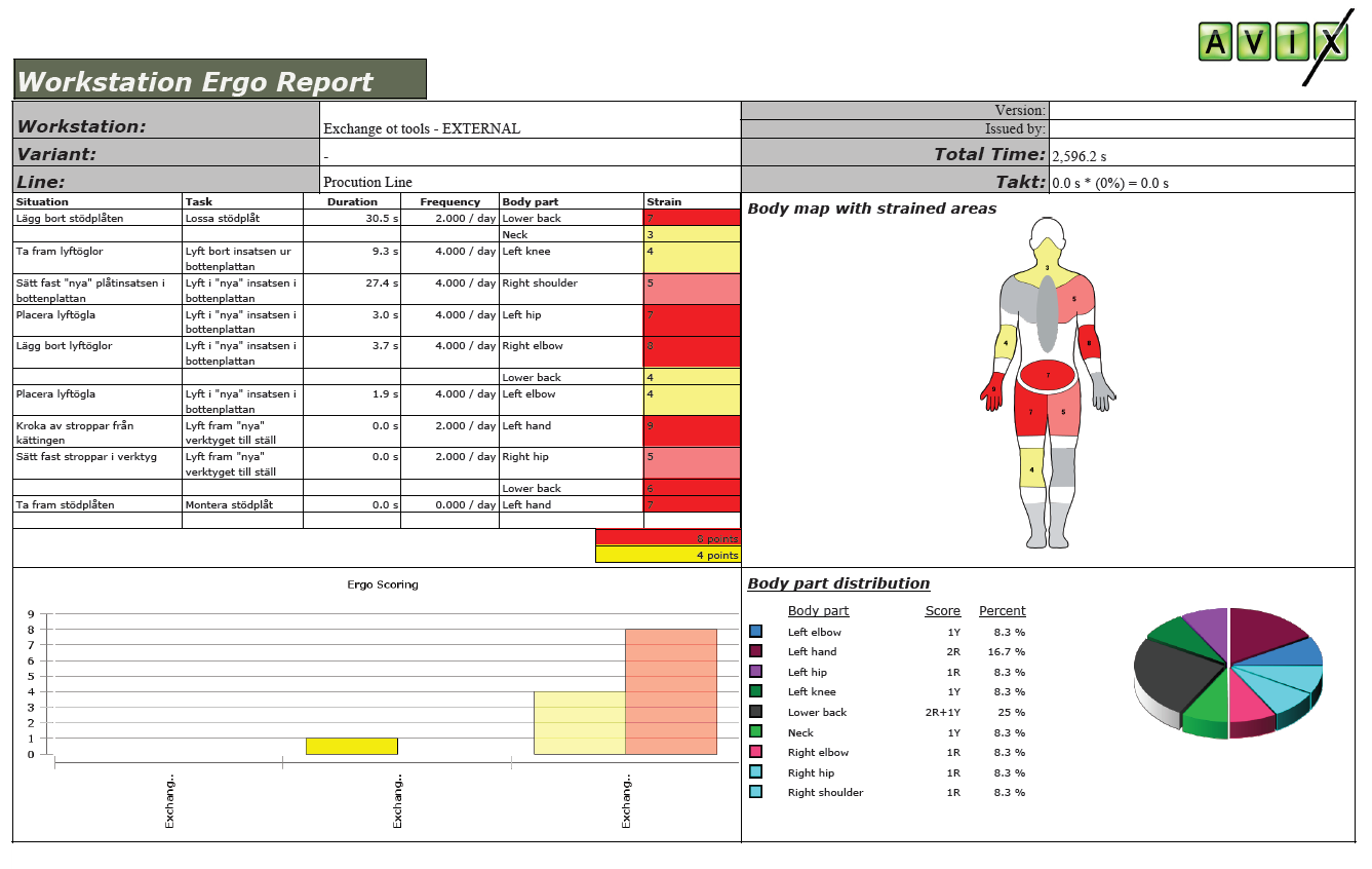 Currently, one report exists within AVIX Ergo: Workstation Ergo report. It will give you a quick overview of the existing physical situations on the workstations of a production line.