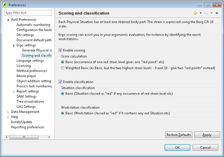 This system is extendable, so it is easy to implement more sophisticated scoring and classifications in AVIX Ergo.
