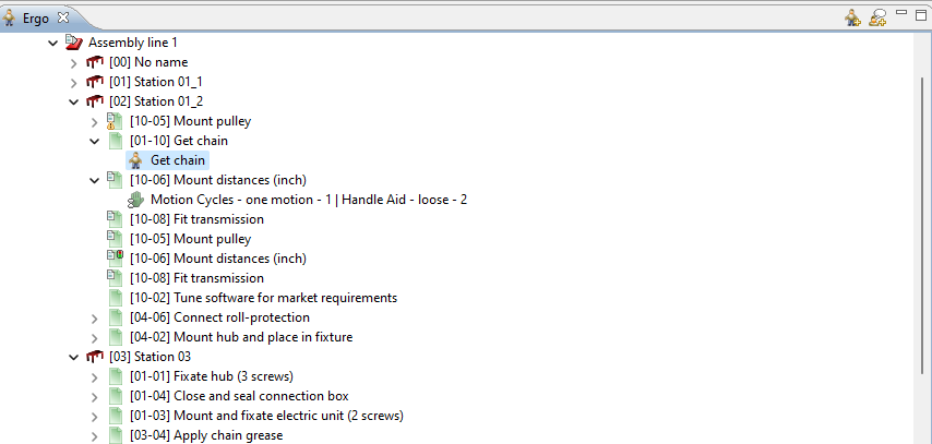 The classifications are used to “decorate” the workstations in the Ergo tree with little ergonomic warning symbols. They are equally simple: if any situation under the workstation is considered as “red”, the workstation will also be considered red.