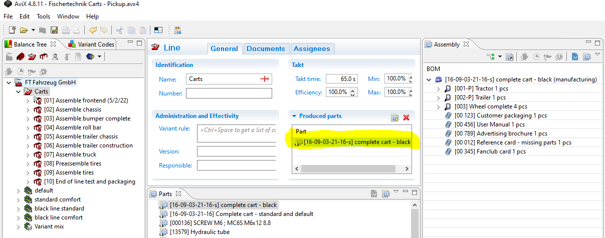 Connect the top level part of the produced product in the MBOM to the Line level in AVIX.