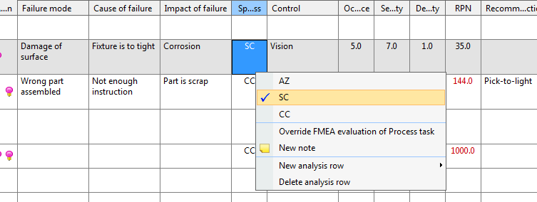 There are quite few features in AVIX  FMEA in order to enhance the quality of the analysis, to reduce the time consumed when performing the analysis and to reduce the RPN systematically. Some of these features are described below.