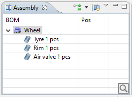 Under the icons in the FMEA-window the analyzable objects created in the assembly will appear. Simply select the assembly or part that shall be shown or analyzed and it will open in the FMEA-grid.