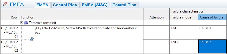 Then select a line in the Function column in the FMEA, like Pipe Seq