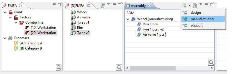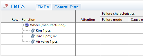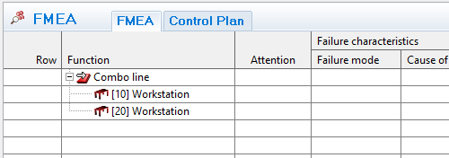 Then select a line in the Function column in the FMEA, like Combo line
