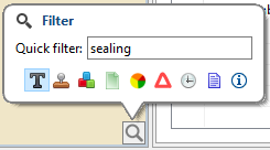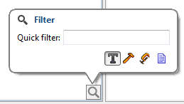 Clicking or hovering with the mouse over the magnifying glass, will open the filter dialog pop-up. Ctrl+f can also be used.