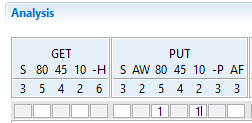 A value in the analysis can be active or inactive. Inactive, or crossed out, values do appear in the analysis but with a distinct gray mark-up, as seen in the picture, and they do not count in the time summary of the analysis. Crossing out a value can be done either by selecting an empty box and using the DOWN keyboard arrow until the desired crossed out number appears, or by pushing the right mouse button over a box with a value, and selecting Cross out or Undo Cross out from the popup menu to change the value state between active and inactive.