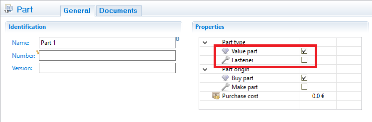 When importing parts from Excel there is no categorization of Value parts/Fasteners. If the Excel file has a Value part/Fastener column this can be matched with the part type.