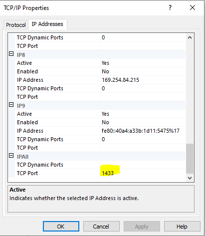 1433 is a default port. Below, it is assumed that 1433 is used, but that may of course be changed.