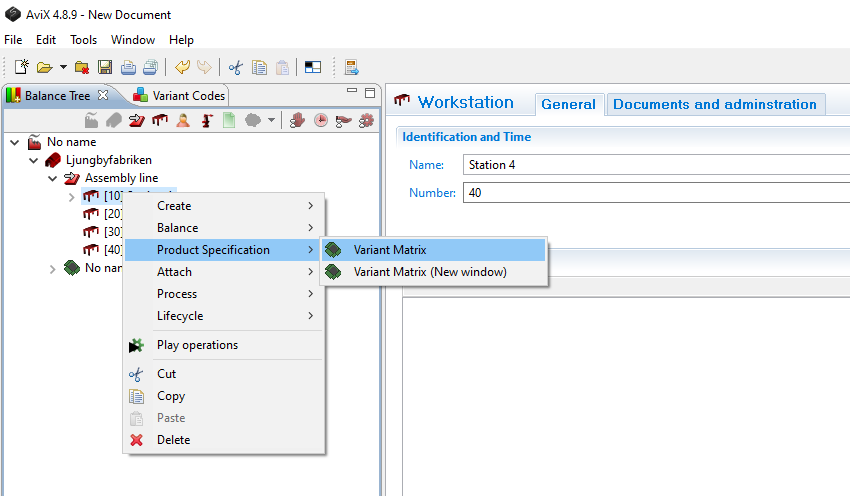 To open the view, right click the line and choose Variant Matrix.