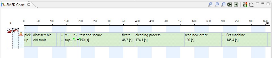 If the line is selected the SMED-graph should now resemble the picture below, of course the scale and number of tasks will differ.