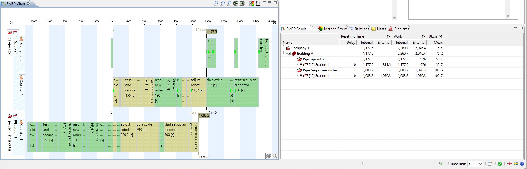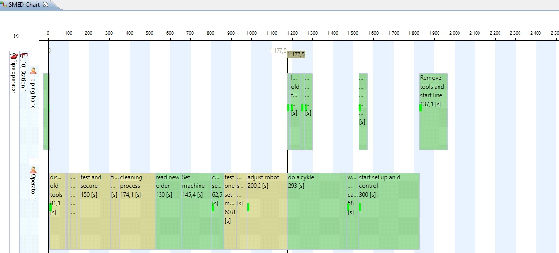 Screenshot of the SMED graph with a second person supporting operator 1 during a part of the resetting.