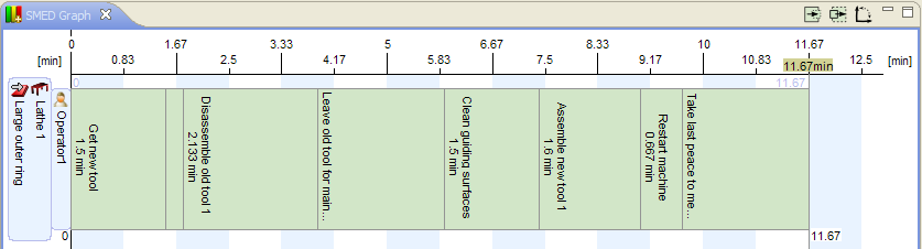 If the line is selected the SMED-graph should now resemble the picture below, of course the scale and number of tasks will differ.
