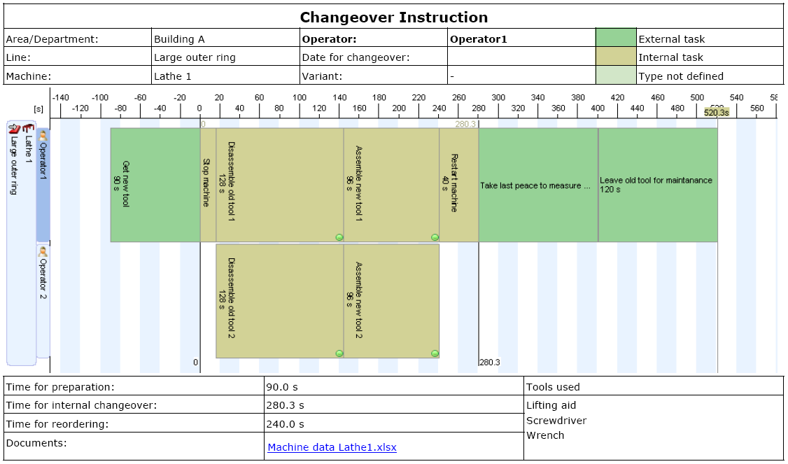 The SMED analysis can be used to create a resetting instruction. Firstly, each operator gets an individual instruction. Secondly the instruction is divided into four sections: