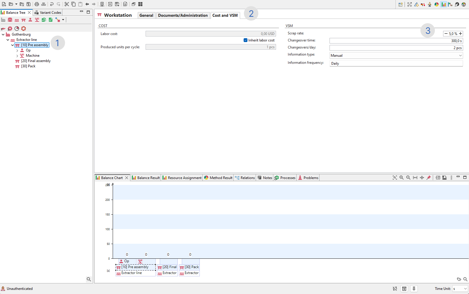 - In the Workstation View, go to the "Cost and VSM" tab.