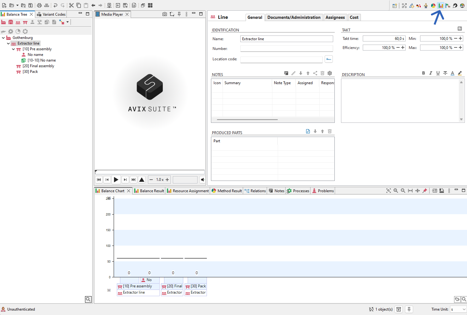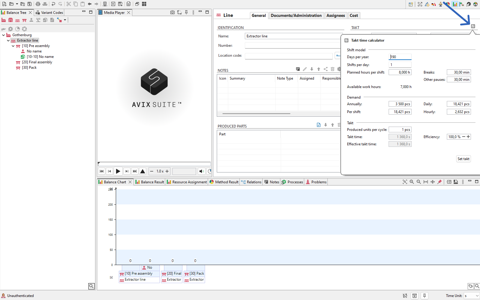 Select the Line and fill in the Takt Time. Set Takt Time: