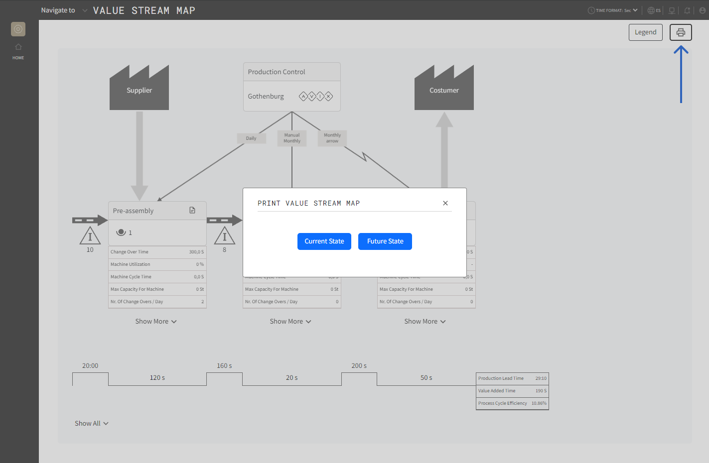 Picture 14: Current state (left): Print the VSM as it is. Fututre state (right): Adds an empty column next to data boxes.