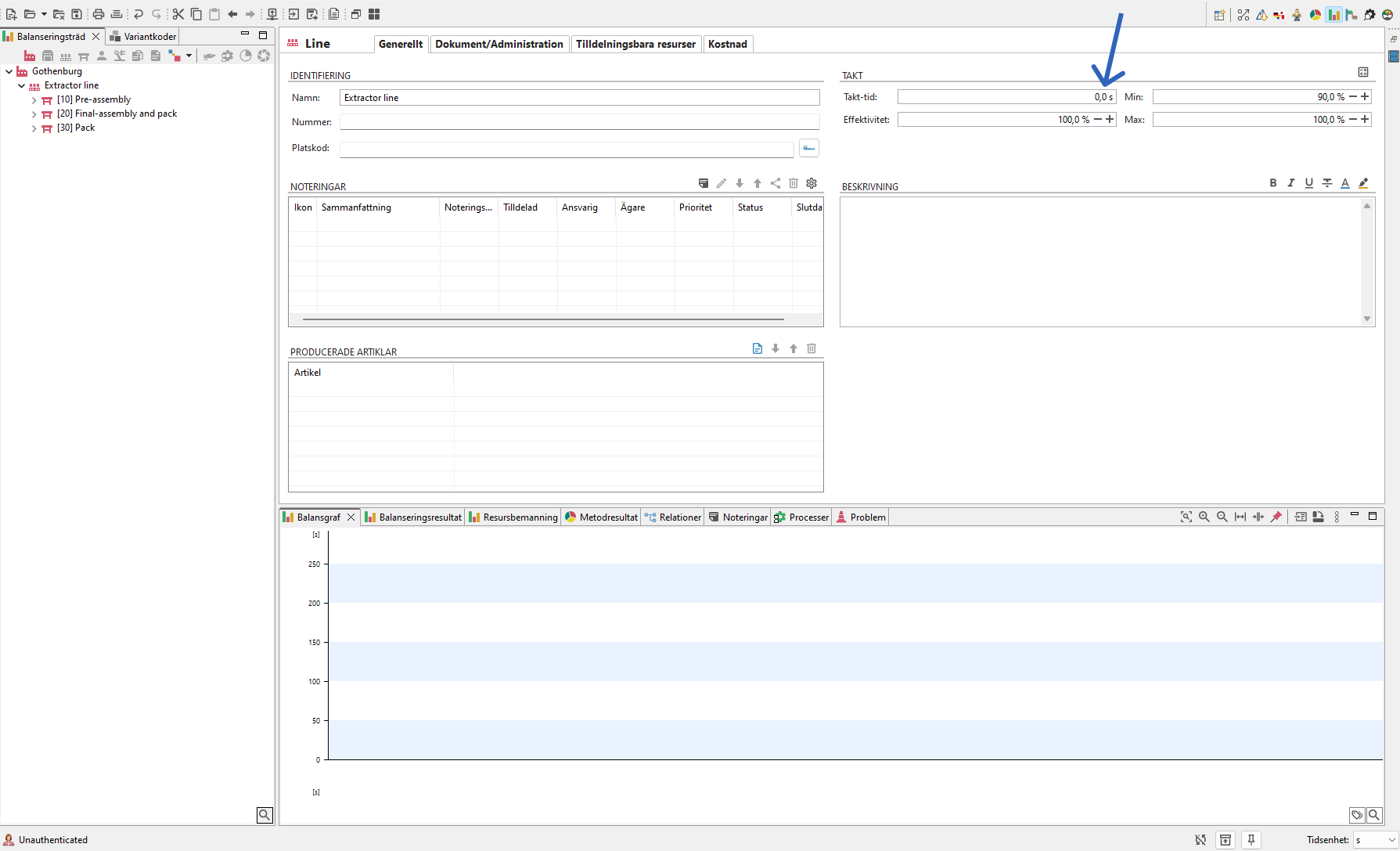 Select the Line and fill in the Takt Time. Set Takt Time:
