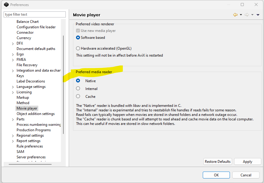 If the video is saved to a network with limited bandwidth and you’re experiencing problems with the video – Use the feature “default search paths” in the AVIX settings. You can set multiple search paths to videos/documents and prioritize which one to use first. Videos should always be saved to a network (networks normally have back-up routines), but the movies can also be stored on your computers hard drive during periods of intense work.